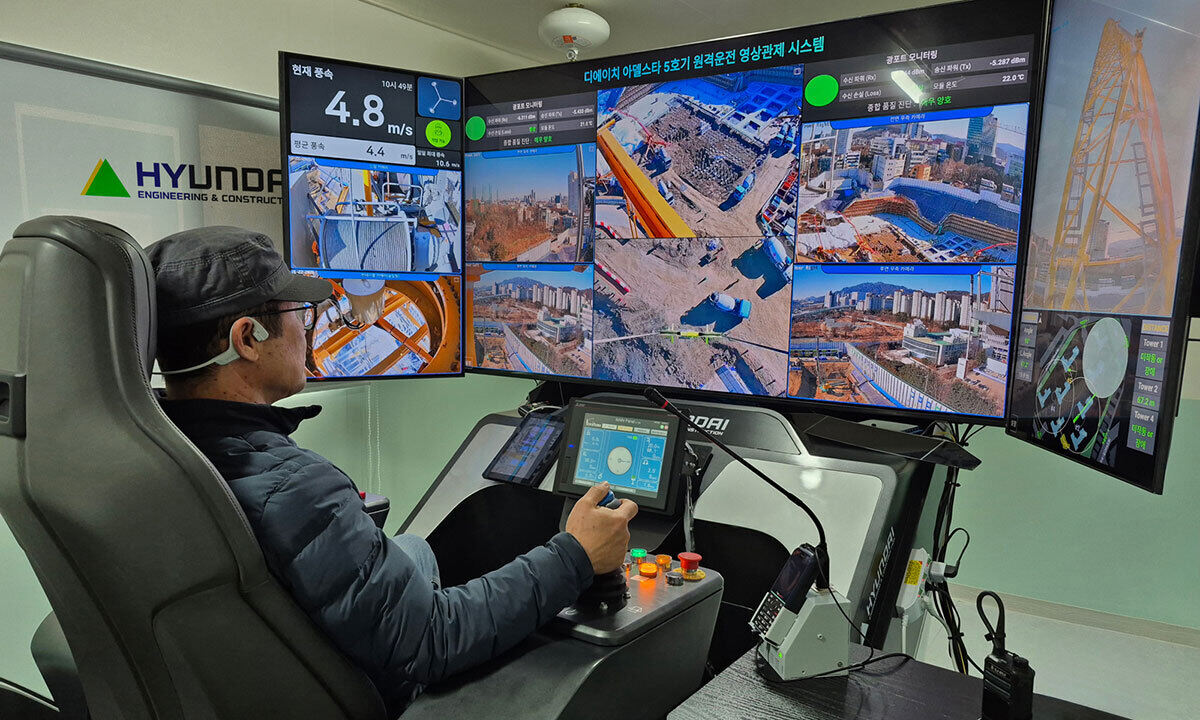 고도가 높은 고위험 환경에서 운전원을 분리해 추락사고 위험 등을 방지하고, 지상 원격 조종실에서 장비를 운용해 기상 변화나 극한 환경의 영향을 최소화할 수 있다는 점이 특징이다. 현대건설은 국토교통부에서 ‘건설기계 안전기준 특례’를 승인받아 해당 기술을 국내 최초로 실제 건설 현장에 적용했다.