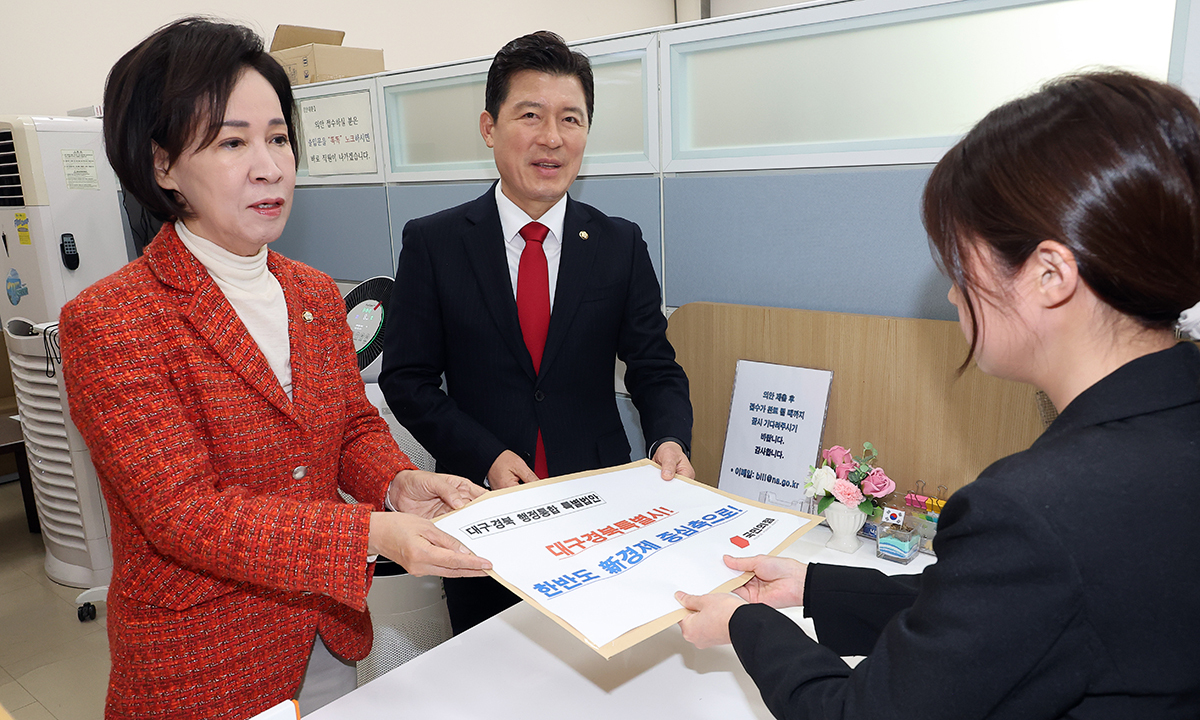 국민의힘 대구시당 위원장인 이인선 의원과 경북도당 위원장인 구자근 의원은 이날 국회 의안과에 대구∙경북 행정 통합 내용을 담은 특별법안을 제출했다. 특별법 대표 발의는 구자근 의원이, 공동발의에는 국민의힘 소속 대구지역 의원 12명 전원, 경북지역 의원 13명 중 10명이 공동 발의자로 참여했다. 경북 북부 지역 소외 가능성을 우려하는 김형동, 박형수, 임종득 의원 등 3명은 서명하지 않았다.