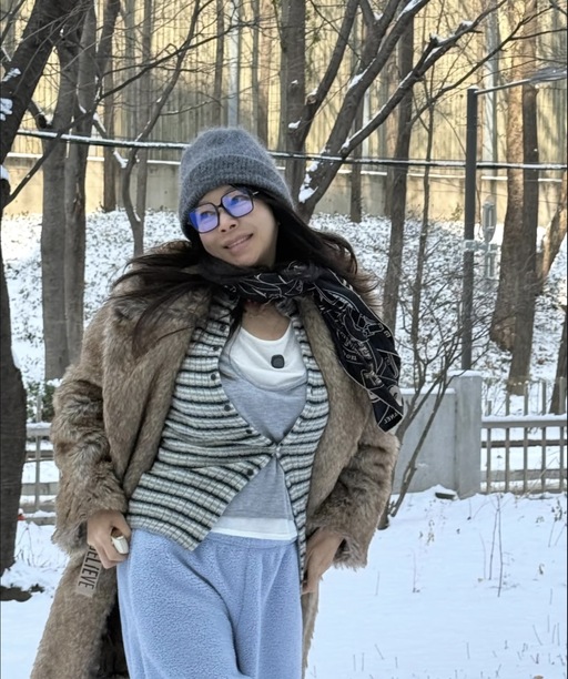 사진 속 황신혜는 눈밭에 있다.