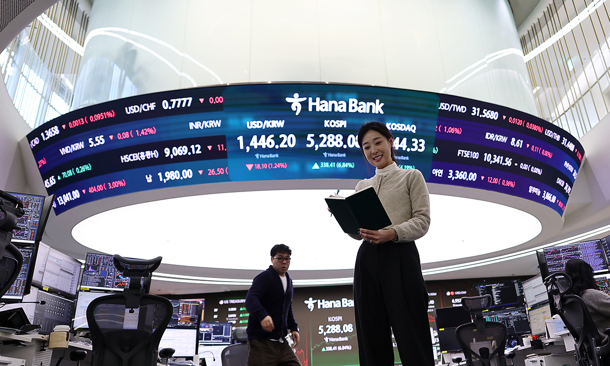 이날 한국거래소(KRX)에 따르면 코스피는 전장보다 338.41포인트(6.84%) 오른 5288.08에 장을 마쳤다. 상승률로 보면 2020년 3월24일(8.60%) 이후 5년10개월여 만에 최고치다.