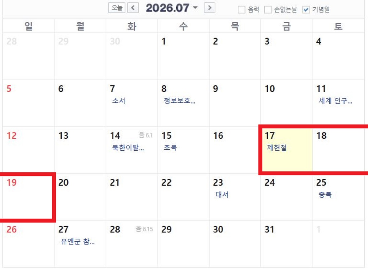7월 17일 제헌절이 18년 만에 다시 공휴일로 지정된다.