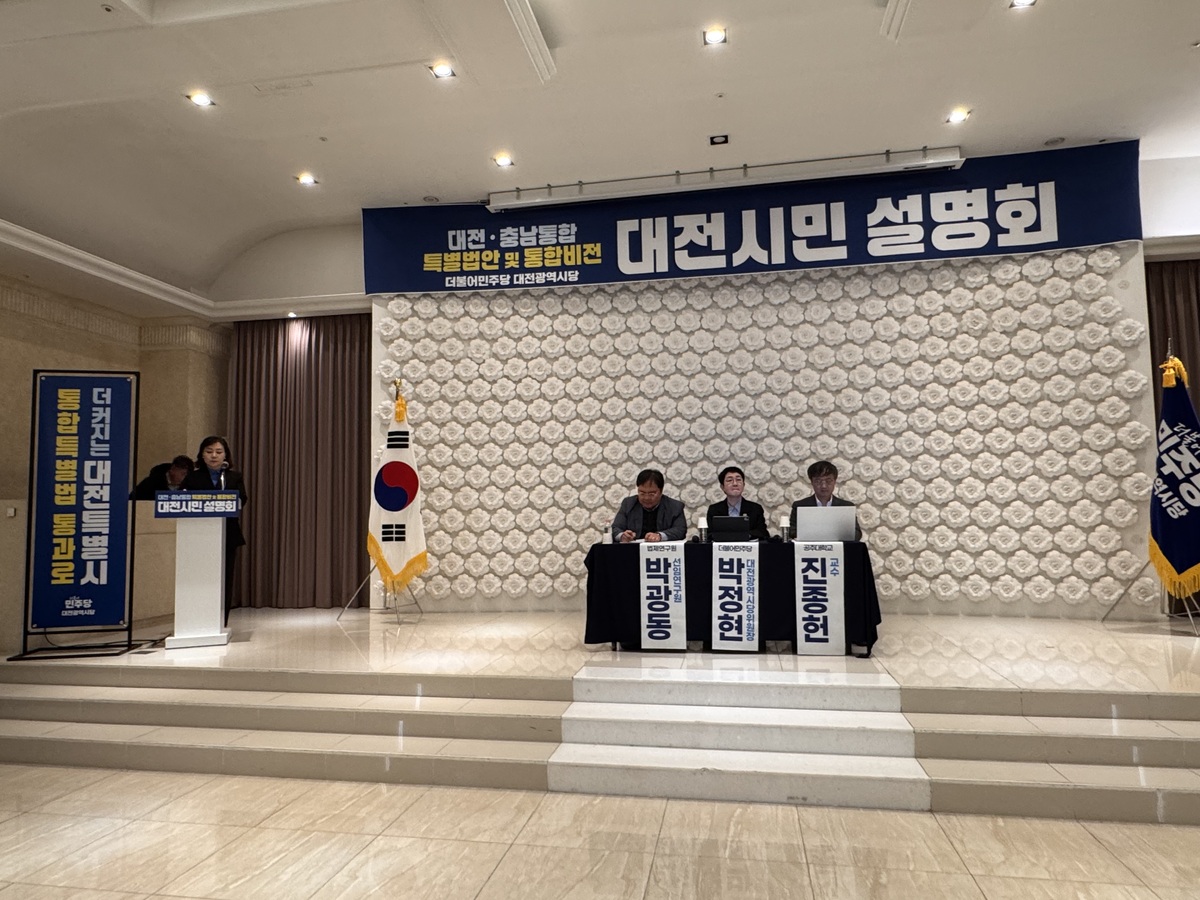 민주당 대전시당 주최로 열린 이날 시민설명회에서는 김민재 행정안전부 차관이 행정통합의 취지와 의미 등을 설명했다.