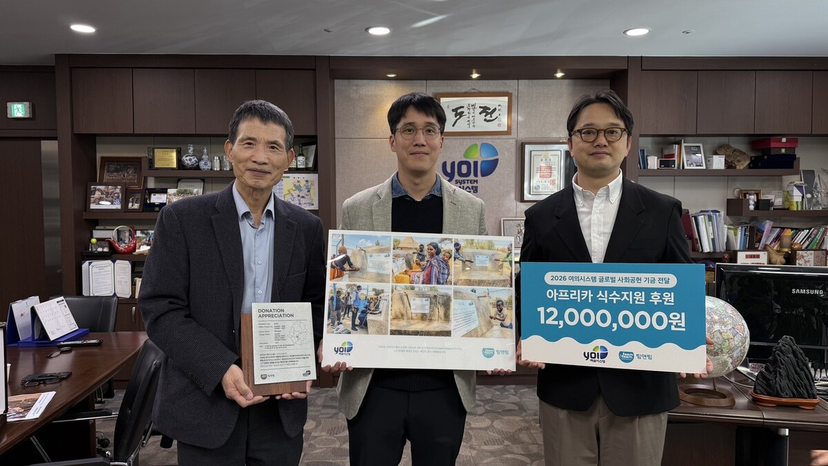 성명기 여의시스템 대표이사는 “작은 나눔일 수 있지만, 물을 통한 생명 보호와 회복에 도움이 되길 바란다. 앞으로도 팀앤팀과 함께 사회적 책임을 실천해 나가겠다”고 전했다. 최봉원 팀앤팀 본부장은 “여의시스템은 지난 15년간 변함없는 파트너로서, 식수 사각지대 해소에 지속적으로 함께해 주셨다. 아프리카 주민들이 깨끗한 물을 누릴 수 있도록 나눔의 손길을 보내주셔서 감사드린다”고 말했다.
