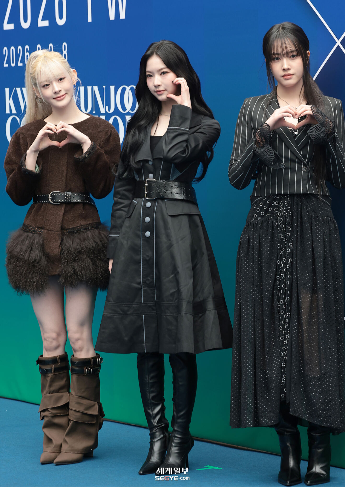 스테이씨 세은, 아이사, 윤(사진 왼쪽부터)이 5일 서울 중구 동대문디자인플라자(DDP)에서 열린 2026 F/W 서울패션위크 곽현주 패션쇼에 참석해 포즈를 취하고 있다.
