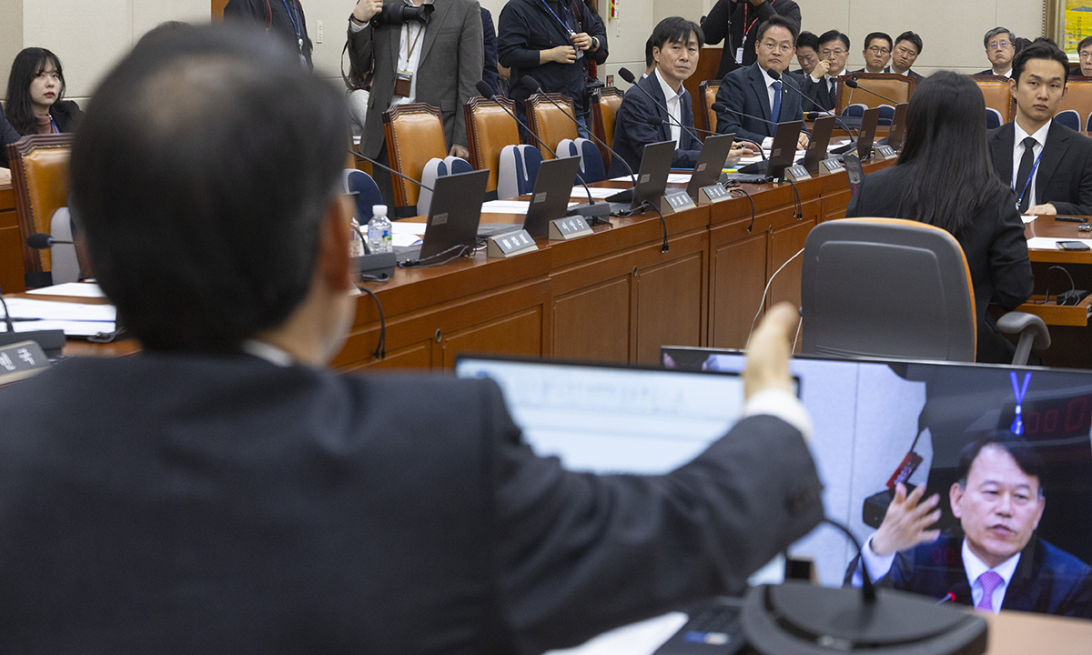 여야는 5일 국회 정무위에서 범여권 정무위원들이 최근 김병주 MBK파트너스 회장, 김형석 독립기념관장을 비롯한 국정감사 증인을 위증으로 검찰에 고발한 것을 놓고 격한 공방을 벌였다.