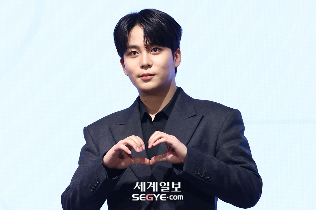 그룹 에이티즈(ATEEZ) 종호가 5일 서울 여의도 페어몬트 앰배서더 호털에서 진행된 미니 13집 '골든 아워 : 파트 4 (GOLDEN HOUR : Part.4)' 발매 기념 기자간담회에 참석해 포즈를 취하고 있다.