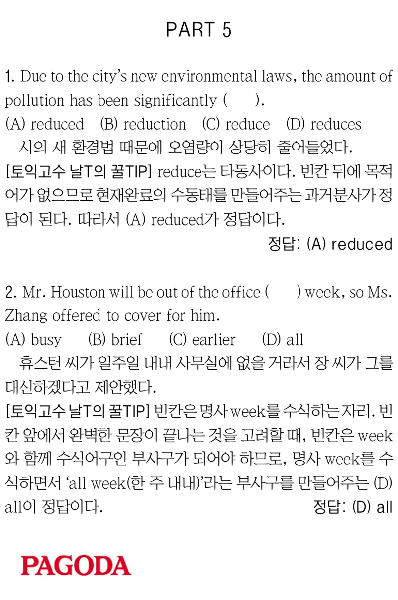 [파고다 강남 끝토익 RC김나래] PART 5