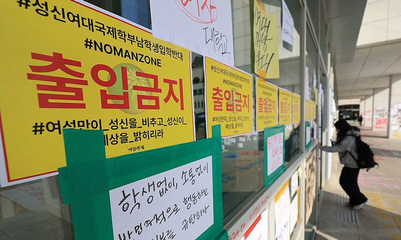 성신여대는 2024년 11월 국제학부에 남성 지원을 열어둔 점을 문제 삼아 래커칠 시위 등을 벌인 학생 13명을 특정해 재물손괴 등 혐의로 고소한 바 있다.