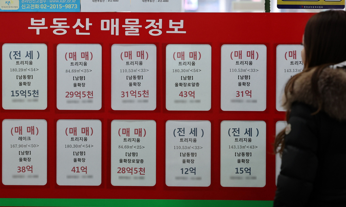 서울 송파구 부동산중개업소에 아파트 매물 관련 안내가 게시되어 있다. 뉴시스