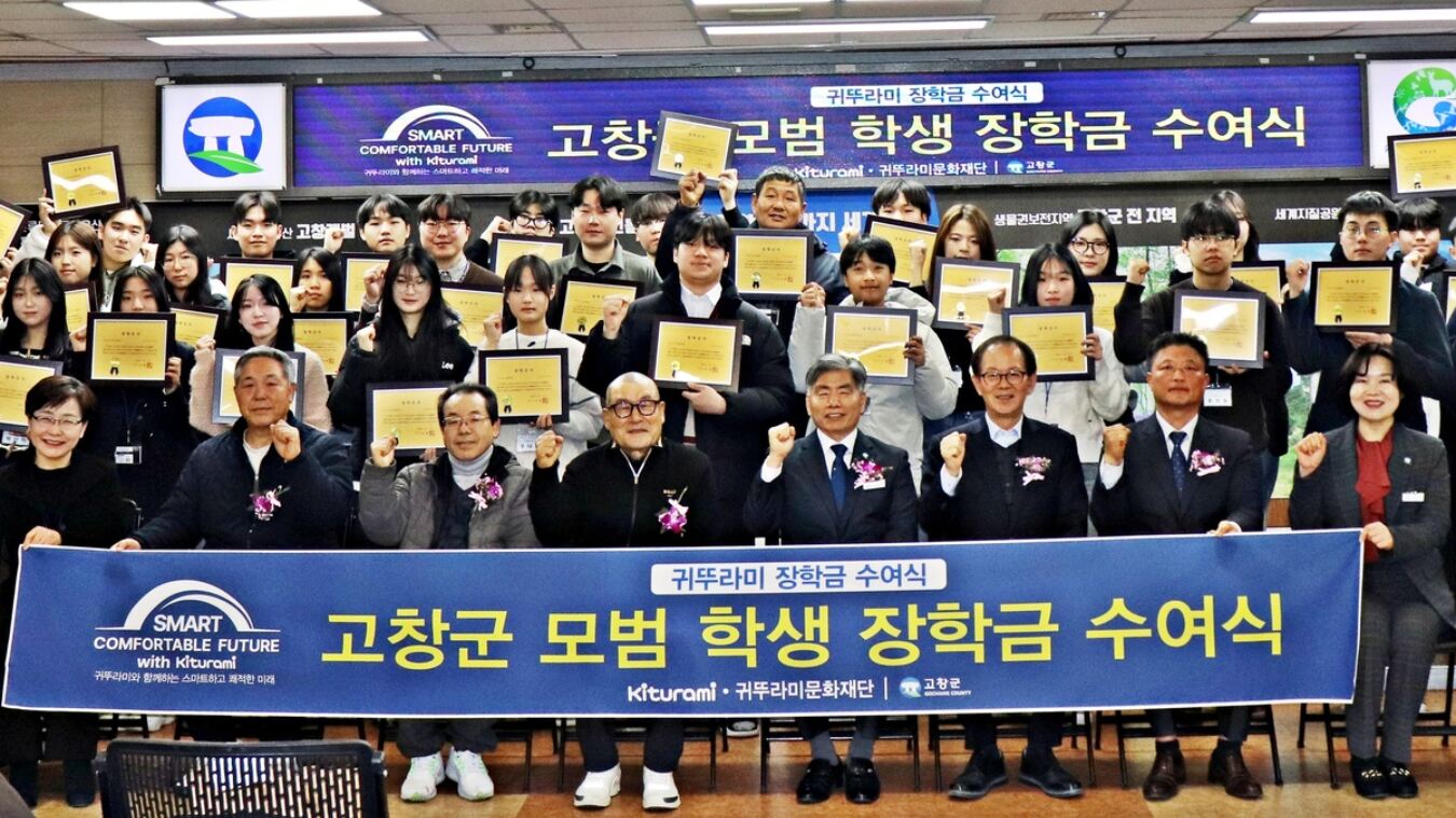 같은 날 군산시도 시청에서 ‘2026년 귀뚜라미 문화재단 장학금 수여식’을 개최했다. 군산 지역에서는 고교생 23명과 대학생 9명 등 모두 32명이 장학생으로 선발돼 총 5000만원의 장학금을 받았다.