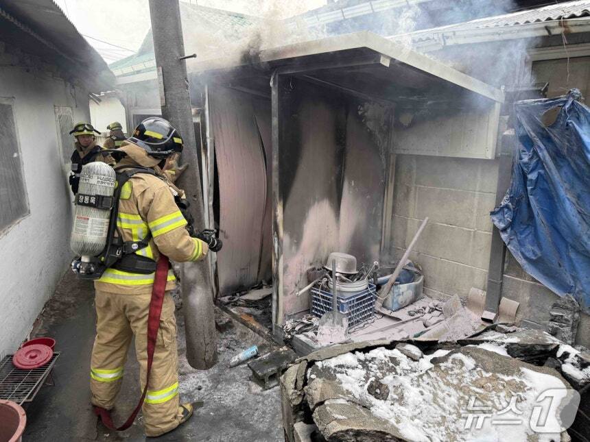 원주 주택가 화재 진압 모습. 강원도소방본부 제공