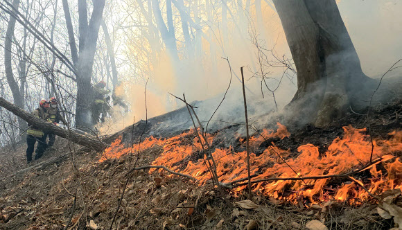 소방당국, 경주 문무대왕면 산불 국가소방동원령 발령