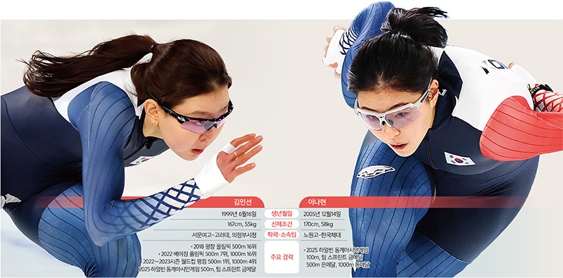 한국 단거리 여자 빙속의 ‘쌍두마차’인 김민선(27·의정부시청)과 이나현(21·한체대)은 2026 밀라노·코르티나담페초에서 단거리 두 종목인 500m와 1000m에 모두 출전한다.