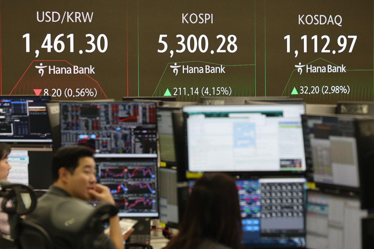 9일 한국거래소에 따르면, 이날 코스피는 전 거래일 대비 209.96포인트(4.13%) 오른 5299.1에 개장했다. 오전 9시30분 기준 현재 4.05% 오른 5295.29포인트를 기록 중이다.