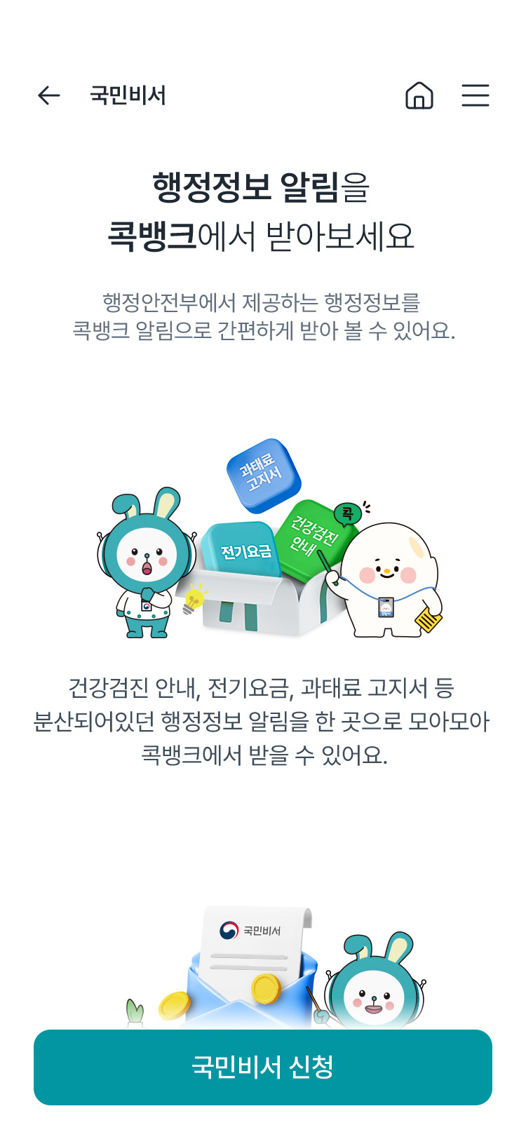 농협상호금융은 모바일 플랫폼 ’NH콕뱅크’에서 행정안전부 ‘국민비서’ 서비스를 제공한다고 9일 밝혔다.