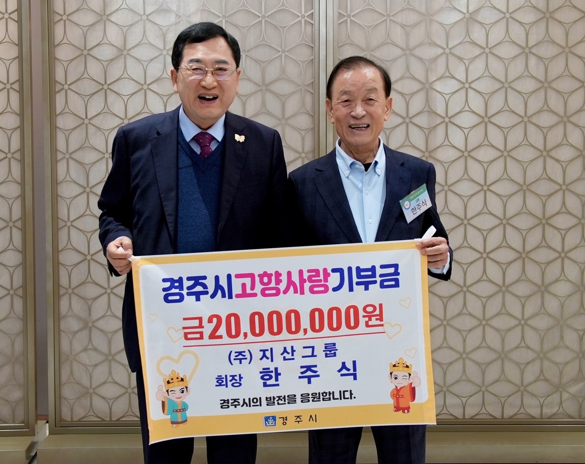 경북 경주시는 한주식 지산그룹 회장이 고향사랑기부 최고한도액인 2000만원을 기부하며 올해 경주시 고향사랑기부 고액기부자 1호에 이름을 올렸다고 9일 밝혔다.