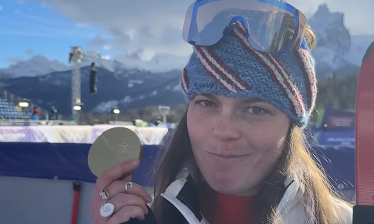미국 알파인 스키 여자 활강 금메달리스트 브리지 존슨은 시상식 직후 금메달 없이 리본만 목에 걸고 취재진과 인터뷰에 나서 눈길을 끌었다.