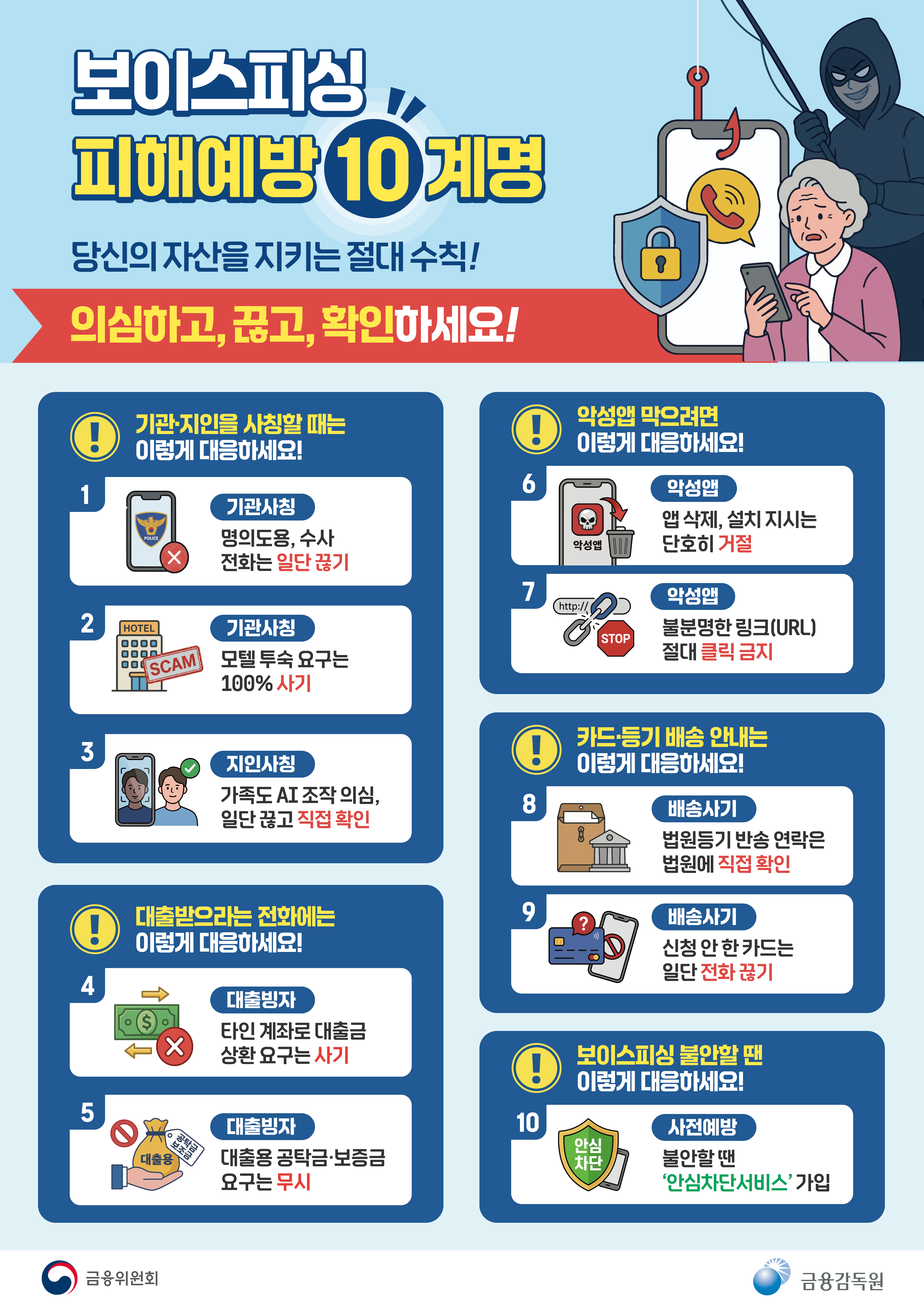 금융감독이 설 연휴를 맞아 고도화된 금융사기 수법에 대응하기 위한 보이스피싱 피해예방 ‘10계명’을 10일 발표했다.