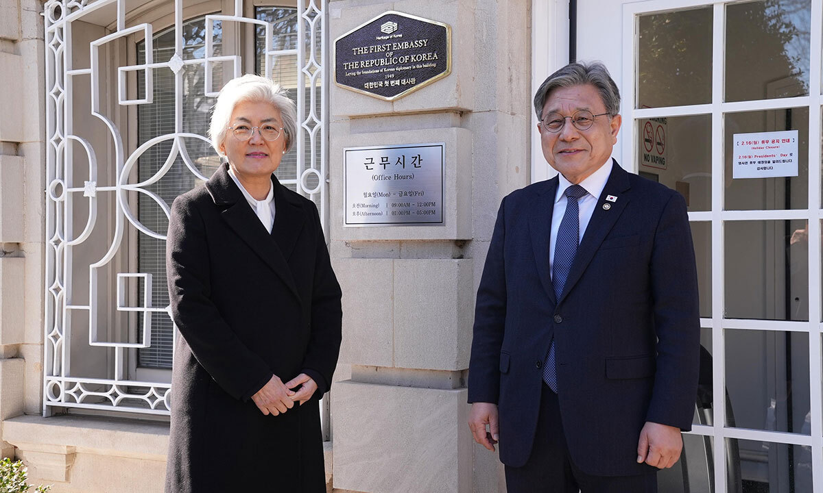 미국 워싱턴의 주미 한국대사관 영사부 청사에 이곳이 ‘대한민국 최초 대사관’ 건물이었음을 알리는 기념 동판이 9일(현지시간) 국가유산청 주도로 설치됐다.