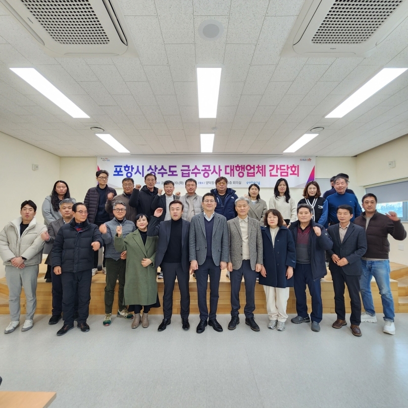 포항시 맑은물사업본부는 10일 양덕정수장 회의실에서 지역 내 20개 상수도 급수공사 대행업체 대표들을 초청해 ‘상호 협력 기반 강화를 위한 소통 간담회’를 가졌다고 밝혔다.