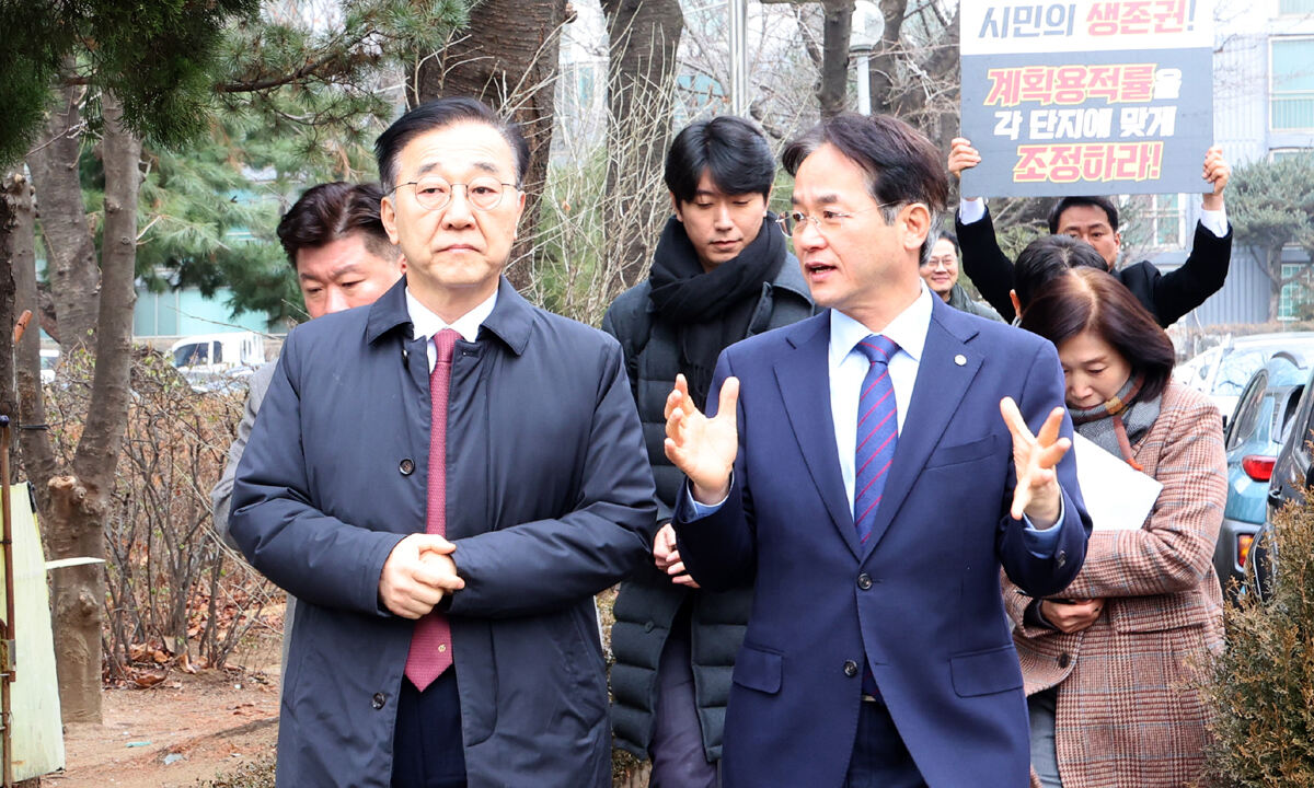 김 장관은 이날 일산 신도시 정비사업 선도지구 현장인 고양시 일산동구 마두동 강촌마을 5단지를 둘러본 뒤 고양시청 백석 별관에 마련된 주민 간담회 자리에서 '1기 신도시 선도지구의 민간 사업은 용적률 상향이 특례에 의해 정해지는 것이냐'는 질문에 이같이 밝혔다.