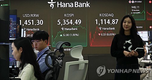 코스피가 11일 1% 올라 5,350대에서 장을 마쳤다.