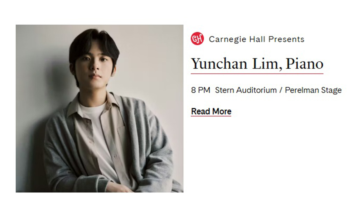 피아니스트 임윤찬이 내년 5월까지 총 4차례 미국 뉴욕 카네기홀에서 리사이틀을 연다.