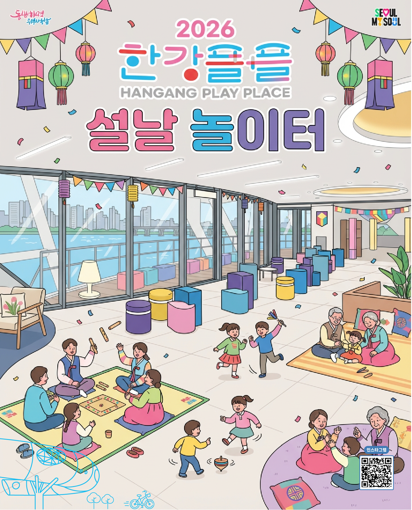 시에 따르면 한강플플에서는 ‘한강플플 설날 놀이터’를 주제로 14일부터 18일까지 전통 놀이중심의 체험 프로그램이 운영된다. 설 당일인 17일은 휴관이다.