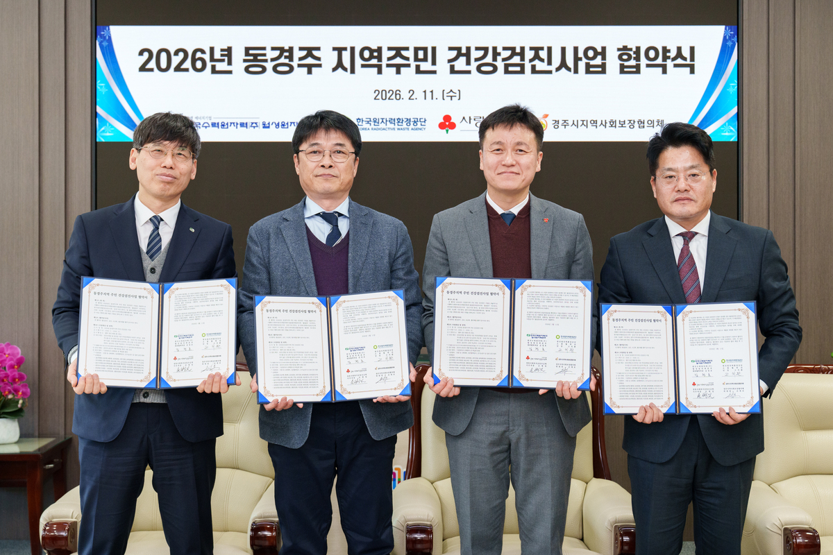 한국수력원자력 월성원자력본부는 11일 2026년도 주민 건강검진 사업 협약식을 가졌다고 12일 밝혔다.