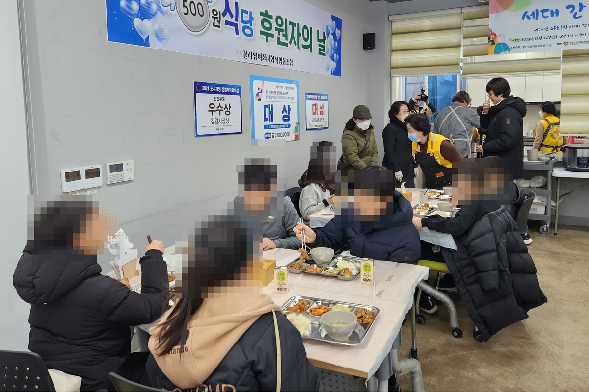 진해구 블라썸여좌사회적협동조합은 방학 기간 아동들에게 500원으로 한 끼를 제공하는 ‘진해 500원 식당’을 운영해 전국적인 관심을 받고 있다.