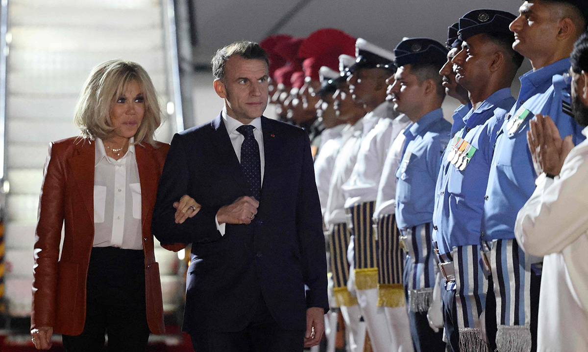 에마뉘엘 마크롱 프랑스 대통령과 부인 브리지트 여사가 사흘 동안의 인도 방문을 위해 17일(현지시간) 뭄바이에 도착했다. 마크롱이 인도에 머무는 동안 프랑스가 자랑하는 라팔 전투기를 인도에 추가로 판매하는 협상이 타결될 것인지에 이목이 쏠린다.