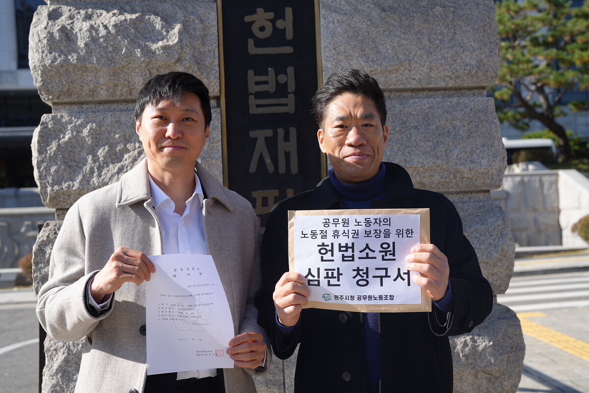 문 위원장은 헌법소원 청구서에서 “노동력을 제공한 대가로 보수를 얻어 생계를 유지한다는 점에서 공무원도 본질적으로 ‘근로자’인데 합리적 이유 없이 노동절에 쉬지 못하는 것은 헌법에서 규정한 평등권(11조)과 단결권(32조) 침해”라고 주장했다.