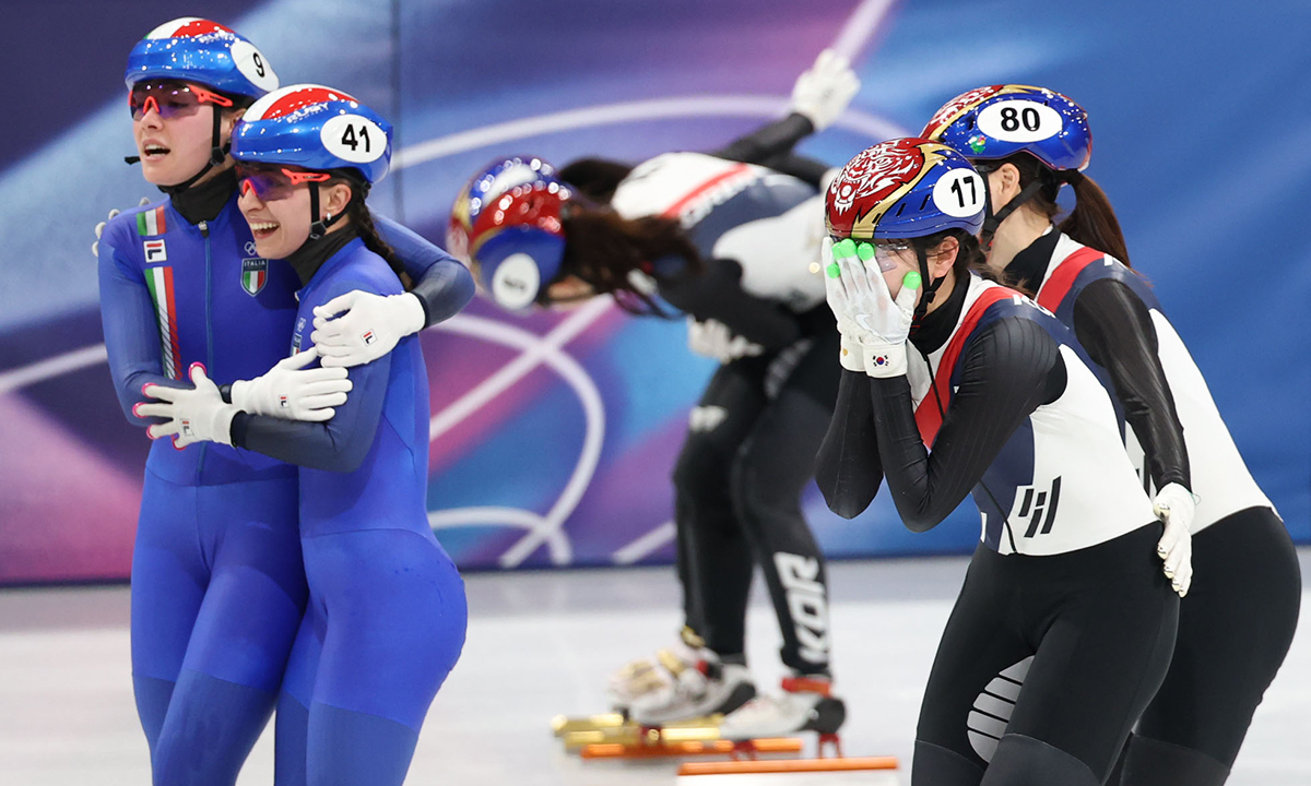 대한민국 쇼트트랙 여자 대표팀은 이날 이탈리아 밀라노 아이스스케이팅 아레나에서 열린 여자 3,000m 계주 결승에서 4분 4초 014의 기록으로 금메달을 목에 걸었다. 이는 이번 대회 쇼트트랙에서의 첫 금메달이다.