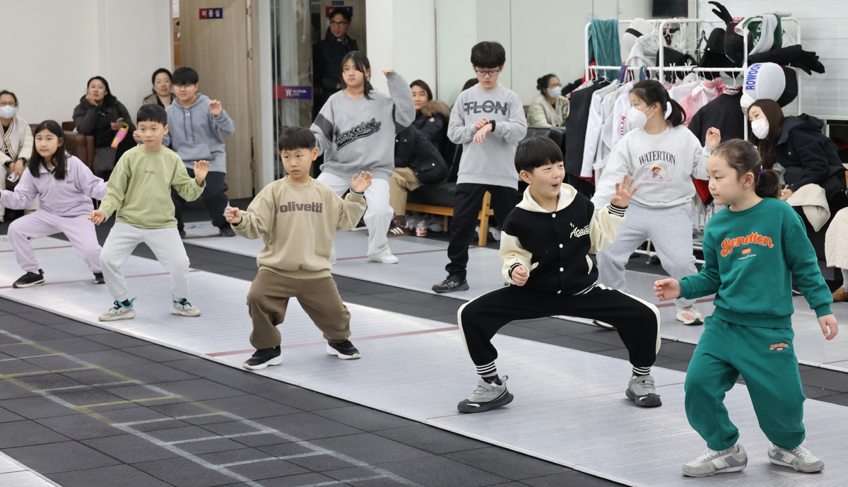 19일 서울 강동구 양재대로 올즈윈펜싱센터에서 열린 ‘2026년 펜싱 체험교실’에 참가함 학생들이 펜싱 체험을 하고 있다.