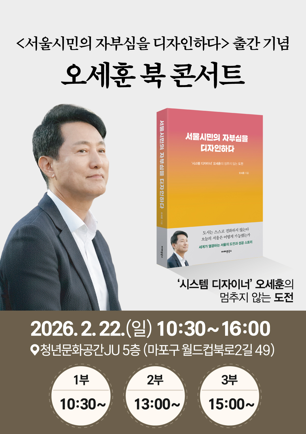 오세훈 서울시장이 이달 22일 ‘서울시민의 자부심을 디자인하다’ 책 출판 기념 북콘서트를 연다.