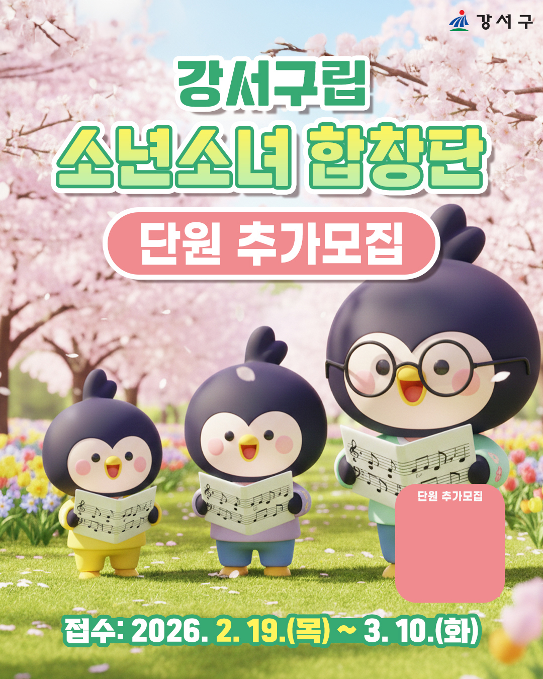 서울 강서구는 다음달 10일까지 ‘강서구립소년소녀합창단’과 함께할 단원 17명을 모집한다고 21일 밝혔다.