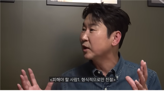 특히 그는 멀리해야 하는 사람으로 ‘형식적으로만 친절한 사람’을 뽑았다. “마음으로 주고받는 것 없이 계속 친절한 사람은 조심해야한다”고.