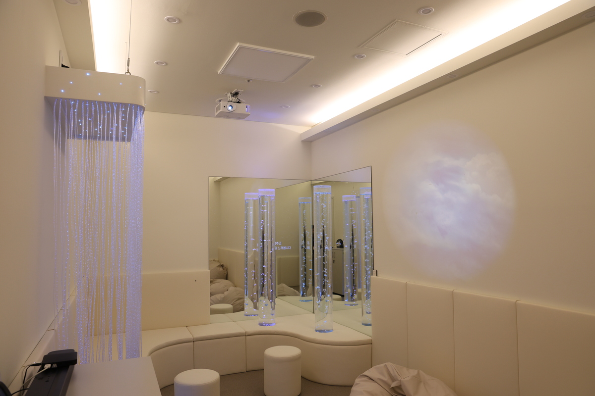 심리 안정실은 이용자의 심리 안정에 실질적인 도움이 될 수 있도록 기획 단계부터 관련 전문가의 자문을 거쳐 조성됐다. 특히 심리적 안정을 유도하는 전문기구인 ‘스누젤렌(Snoezelen) 기구’를 포함해 사용자가 조도를 조절할 수 있는 간접조명과 부드러운 색의 마감재를 사용함으로써 심리적 회복에 집중할 수 있는 편안한 환경을 조성했다. 스누젤렌은 버블튜브, 프로젝터, 광섬유커튼 등 다양한 감각 자극을 만들어 심신의 이완과 안정감을 돕는 전문 기구다.