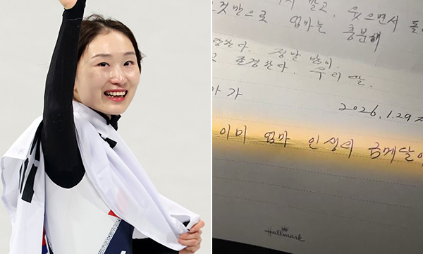 2026년 밀라노·코르티나담페초 동계 올림픽에서 올림픽 무대와 영원한 이별을 선언한 최민정(28·성남시청)이 어머니로부터 받은 손편지가 국민들의 가슴을 먹먹하게 만들고 있다. 어머니는 그간 딸에게 하지 못한 슬픔의 감정을 이야기하면서 딸의 어깨를 토닥여줬다.