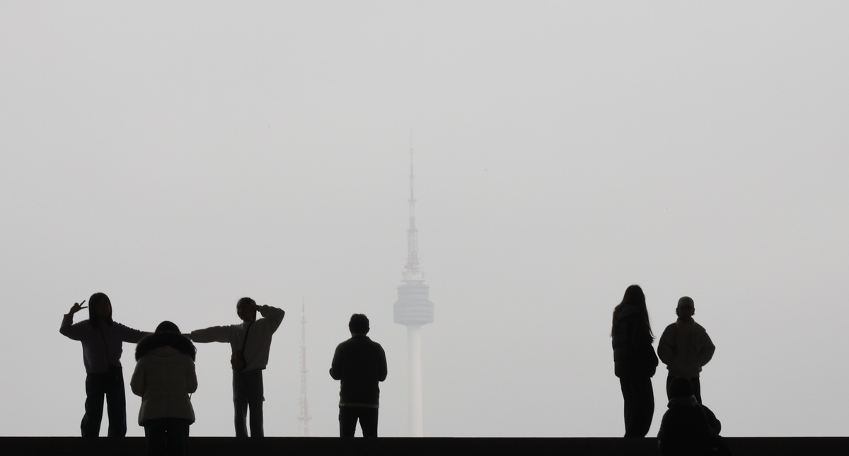 황사로 인해 전국 대부분 지역의 미세먼지 농도가 나쁨 수준을 보인 22일 서울 용산구 국립중앙박물관에서 바라본 남산이 뿌옇다.