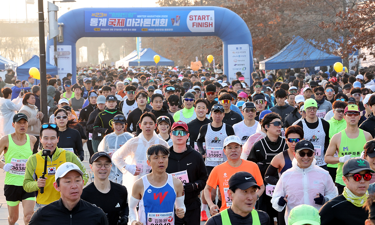 세계일보와 한국마라톤연맹이 공동으로 주최한 희망드림 ‘제23회 동계 국제 마라톤대회’가 21일 서울 영등포구 여의도 한강공원 물빛광장에서 열린 가운데 6500여명의 선수들이 힘차게 출발하고 있다.