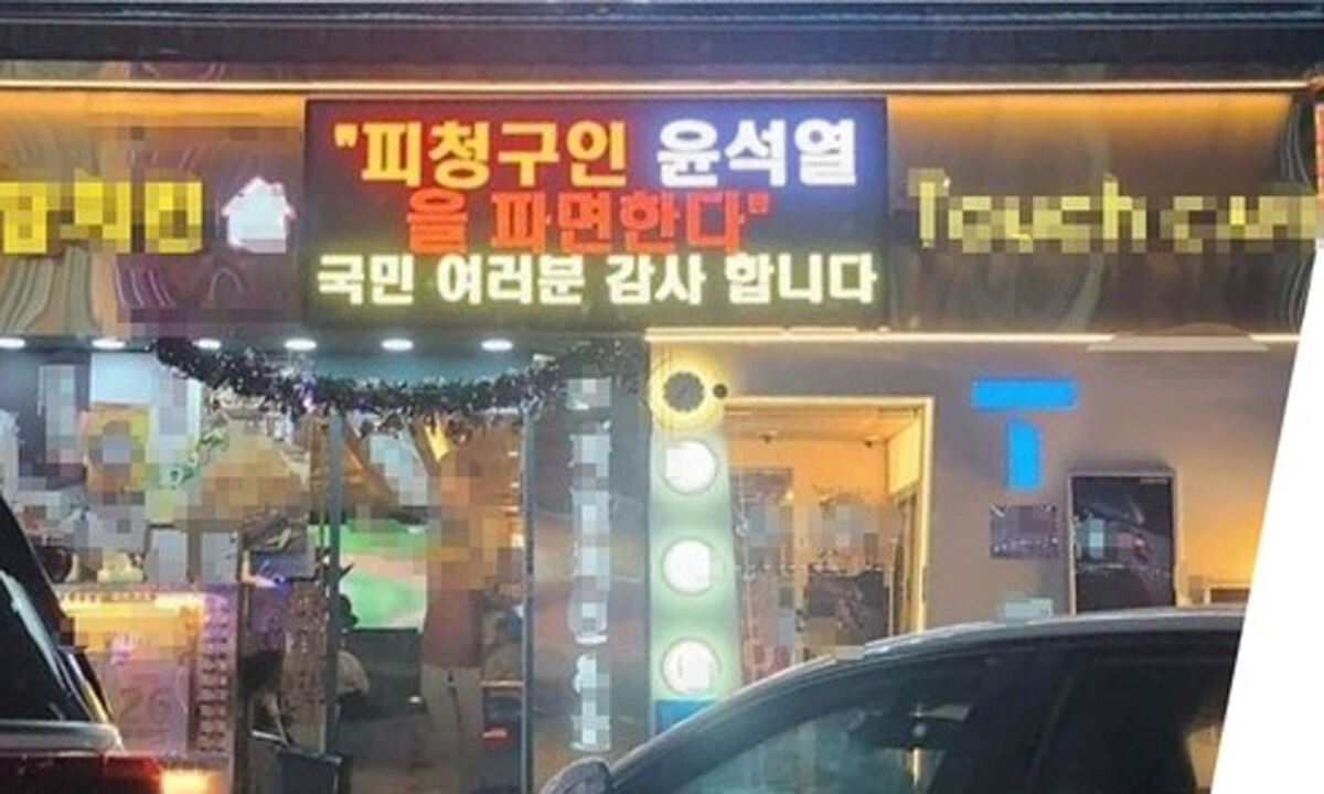 이 가게는 지난해 4월 4일 헌법재판소의 윤 전 대통령 파면 선고 직후 가게 입구 전광판에 "'피청구인 윤석열을 파면한다' 국민 여러분 감사합니다"라는 글을 노출했다.