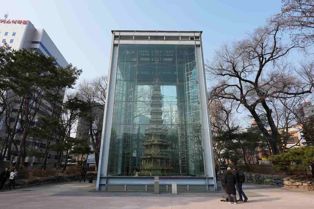 서울 탑골공원에 있는 국보 ‘원각사지 십층석탑’이 27년 만에 유리보호각 없이 시민들을 만난다.