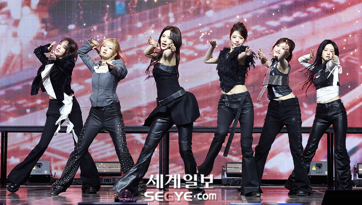 그룹 아이브가 23일 오후 서울 광진구 예스24 라이브홀에서 진행된 정규 2집 ‘리바이브 플러스(REVIVE +)’ 발매 기념 미디어 쇼케이스에 참석해 열띤 공연을 펼치고 있다.