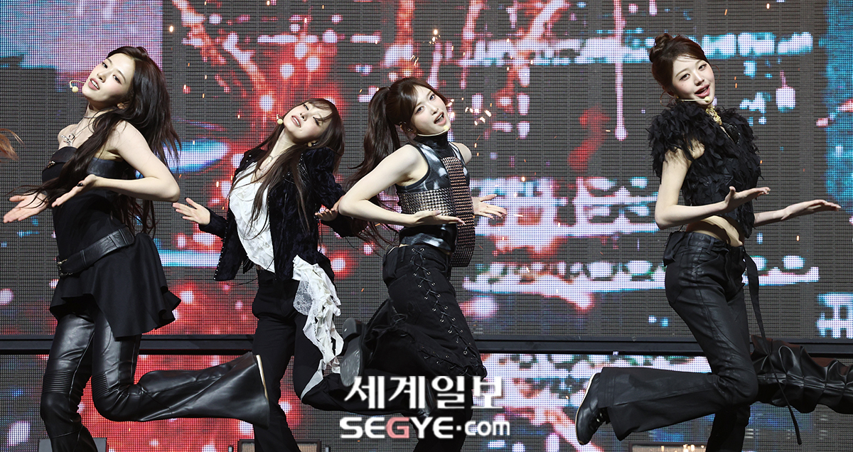 그룹 아이브가 23일 오후 서울 광진구 예스24 라이브홀에서 진행된 정규 2집 ‘리바이브 플러스(REVIVE +)’ 발매 기념 미디어 쇼케이스에 참석해 열띤 공연을 펼치고 있다.