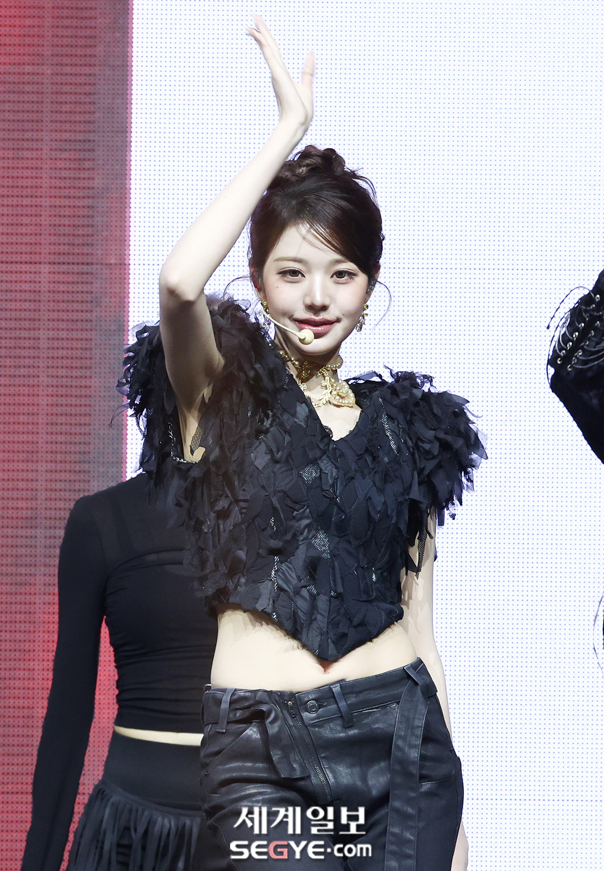 그룹 아이브 장원영이 23일 오후 서울 광진구 예스24 라이브홀에서 진행된 정규 2집 ‘리바이브 플러스(REVIVE +)’ 발매 기념 미디어 쇼케이스에 참석해 열띤 공연을 펼치고 있다.