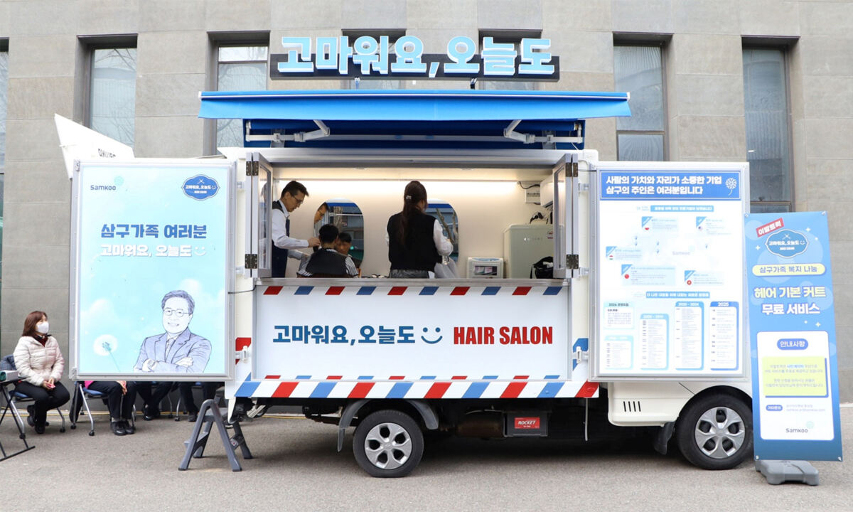 위탁 관리 전문 기업인 삼구아이앤씨는 이날부터 사내근로복지기금으로 운영하는 두 번째 복지트럭인 ‘이발트럭’ 서비스를 본격화한다고 밝혔다. 서강대학교 현장에서 250여명 미화·시설 관리 업무를 담당하는 직원들에게 푸드트럭과 이발트럭 무상 서비스를 제공했다.