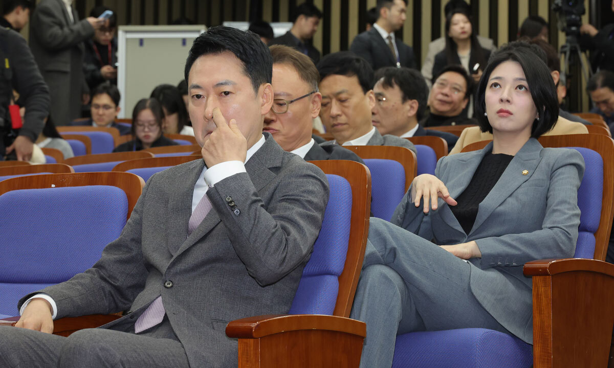 국민의힘은 23일 오전 10시40분부터 오후 1시30분쯤까지 약 3시간 동안 의원총회를 열었다. 다만 지도부는 당명 개정과 행정통합 논의에 긴 시간을 할애하며 사실상 ‘김 빼기’에 나섰다. 의총 도중 자리를 떠난 조은희 의원은 기자들에게 “당명 보고를 짧게 해달라고 했는데, 지금 선수를 바꿔가며 1시간20분 동안 하고 있다”며 “뭘 논의하겠다는 건가. 누구를 위해 의총을 하는지 모르겠다”고 불만을 드러냈다. 배현진 의원도 “1시간 넘게 대구·경북 통합 논의만 하고 있다”며 “오늘도 여론조사에서 (지지율이) 대폭락한 것으로 아는데, 이런 한가한 얘기만 할 일인가”라고 지적했다.