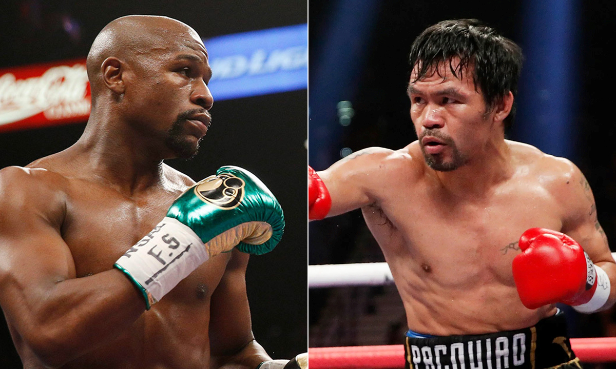 전매특허인 숄더롤을 앞세워 수비 후 카운터를 노리는 아웃복서 스타일의 메이웨더와 상대에게 파고들어 치고받는 인파이터 스타일의 파키아오는 2015년 5월 첫 맞대결을 펼쳤다. 당시 47전 47승 무패에 5체급을 석권했던 메이웨더와 8체급 석권이라는 최초 기록을 세운 파키아오의 대전은 복싱 역사상 가장 많은 돈이 걸리며 전 세계의 관심을 끌었다. 총 파이트머니는 6억달러(약 8670억원) 이상으로 추정되며 메이웨더가 약 2억2000만달러(약 3180억원), 파키아오가 1억2200만달러(약 1760억원)를 챙긴 것으로 알려졌다. 맞대결은 메이웨더의 만장일치 판정승으로 끝났다.