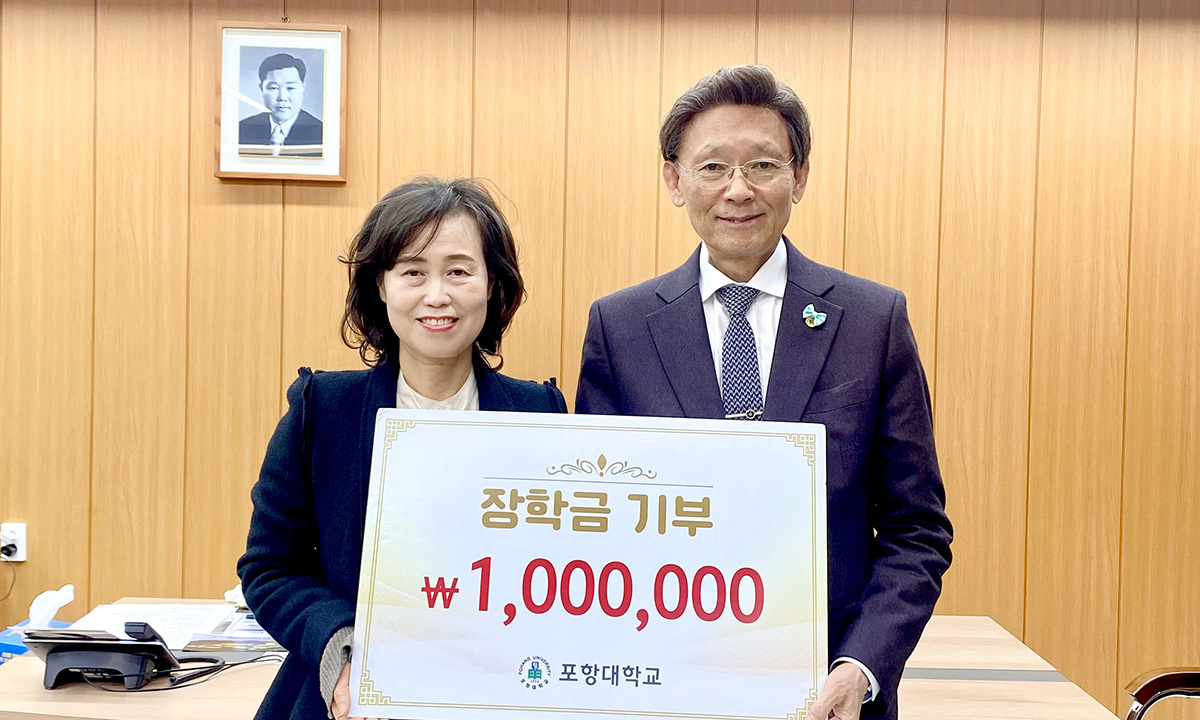 포항대학교는 24일 교내 평보관 총장실에서 하민영 총장이 유아교육과에 직접 기부한 장학금 전달식을 가졌다고 밝혔다.